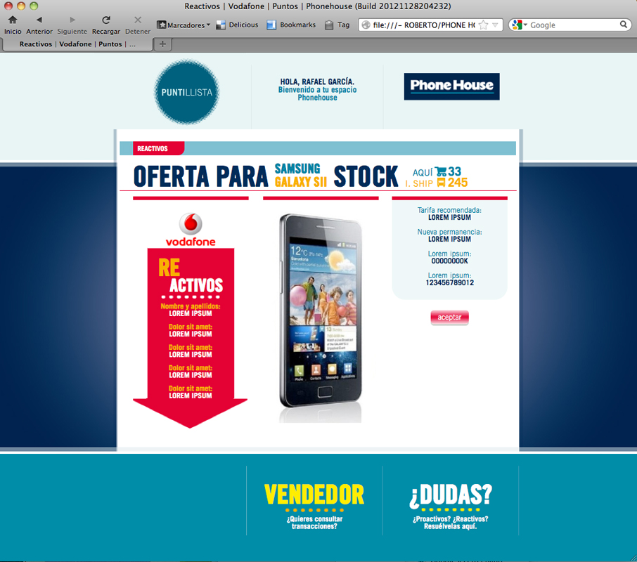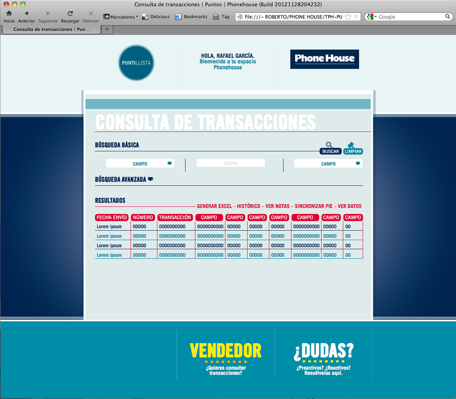Phonehouse. Diseño de aplicación Web. Publicado 1 febrero, 2013 por robertopeap Diseño de aplicación web para la gestión de los programas de puntos de las principales operadoras telefónicas. Creación de naming y logo.